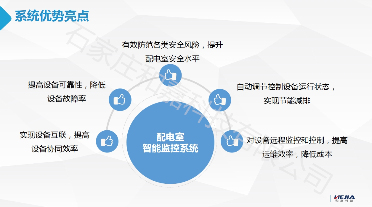 配電室智能輔控系統通過物聯網、算法與自動化控制技術,實現對配電室環境、設備、安防的全維度智能管理。以下是和嘉科技系統的核心功能模塊與技術亮點: