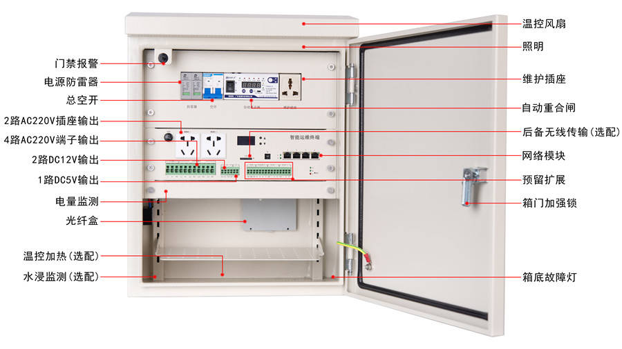 在經(jīng)過大量的現(xiàn)場勘查、現(xiàn)網(wǎng)分析的同時,憑借對行業(yè)應(yīng)用的深入研究和積累,智能監(jiān)控機箱經(jīng)過多次的產(chǎn)品升級與優(yōu)化,使產(chǎn)品在基礎(chǔ)配電箱的功能基礎(chǔ)上增加了智能配電、在線監(jiān)控、故障定位、故障修復(fù)、遠程控制、能耗管理等功能。