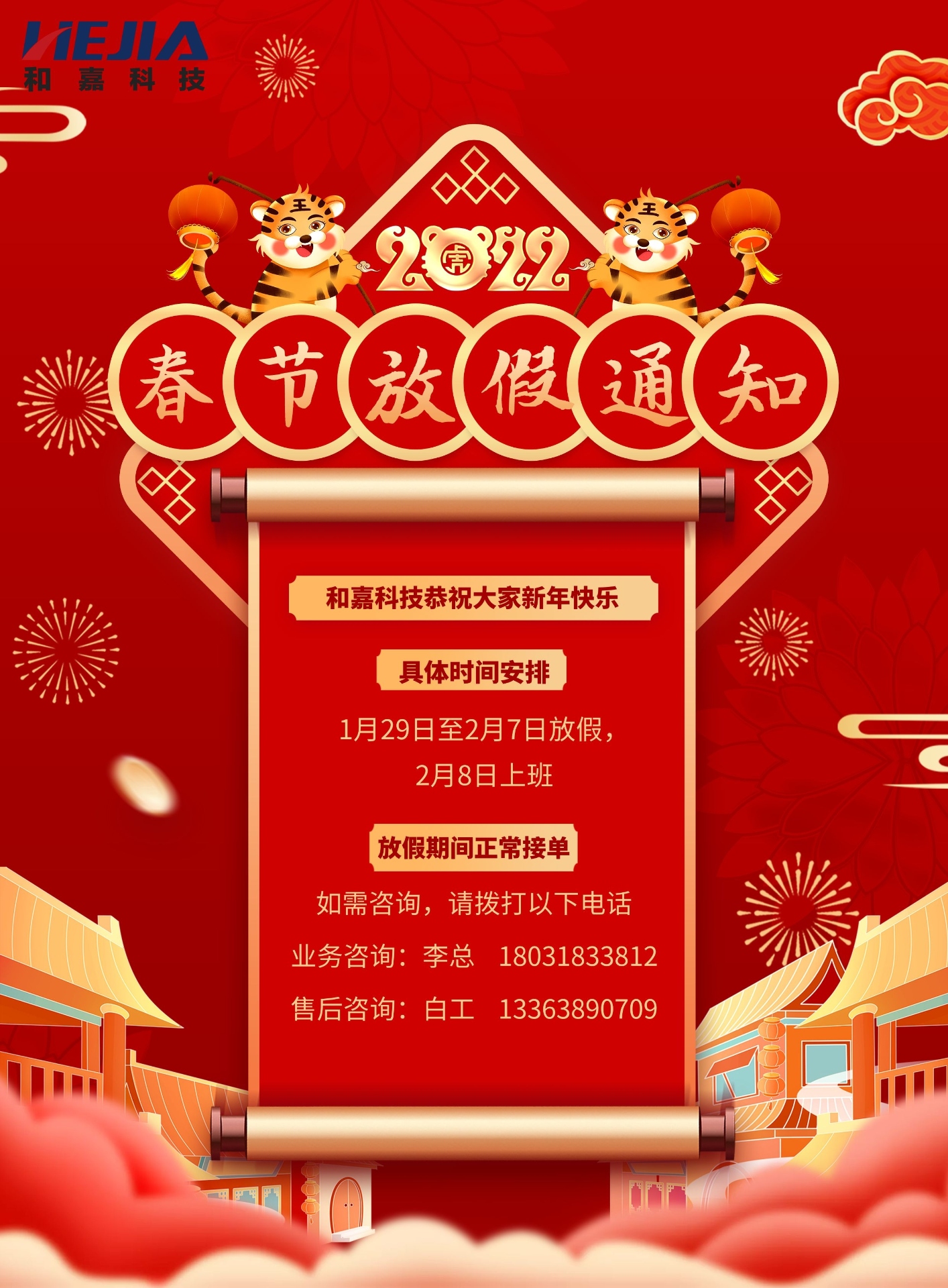 歲末將至,敬頌冬綏,2022,萬事勝意(春節放假通知)