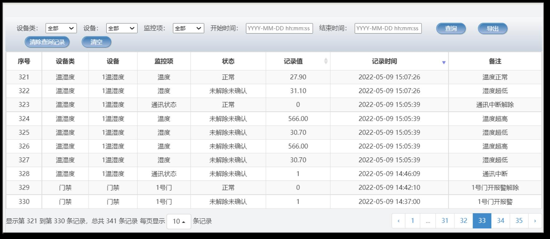 系統(tǒng)提供各類信息的數(shù)據(jù)查詢與分析,通過各種數(shù)據(jù)列表、曲線圖、餅狀圖、柱狀圖等多種圖表進行展示,支持歷史數(shù)據(jù)一鍵導(dǎo)出。