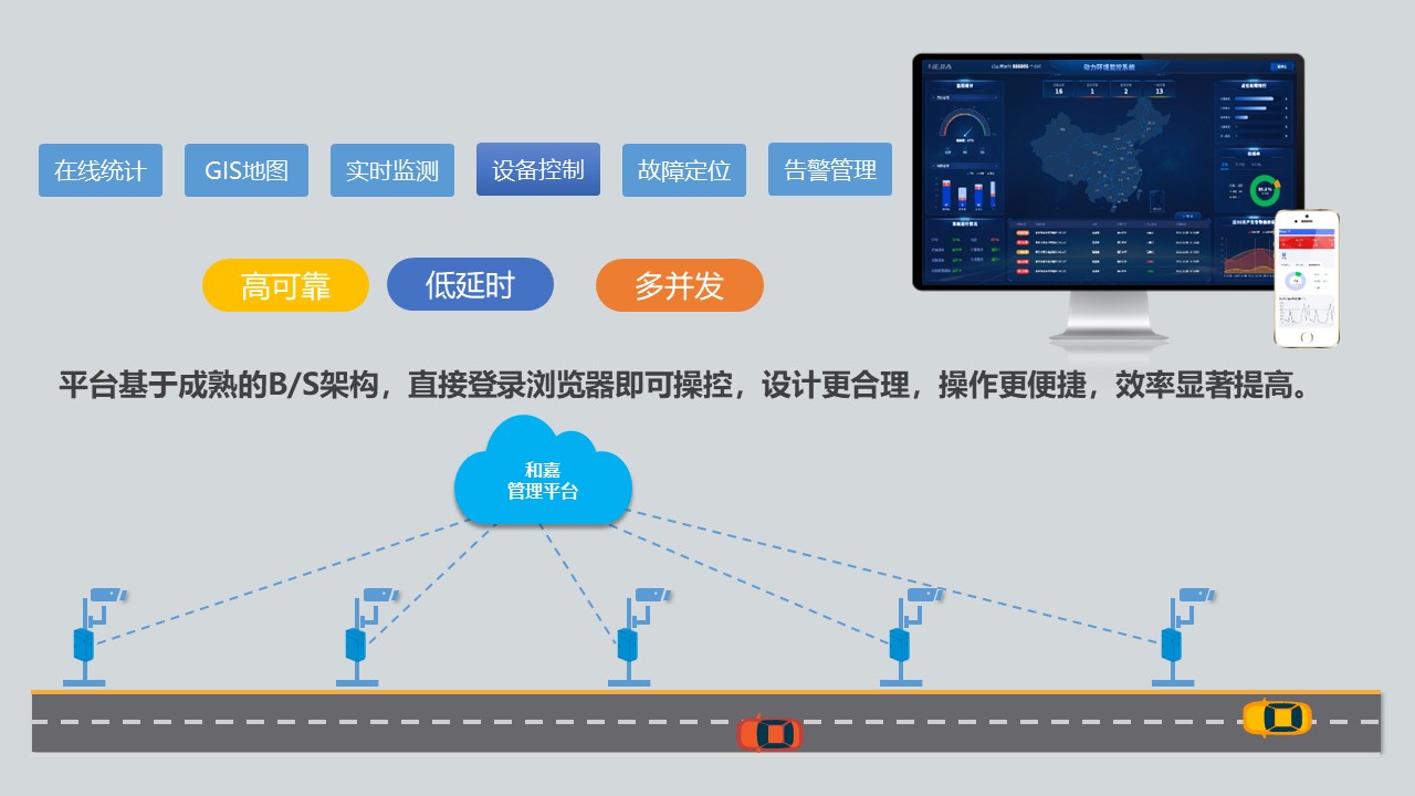 此外,前端設備箱與智能運維管理平臺相連,可實時監控和準確定位前端設備。在平臺端,您可以查看所有接入設備的位置信息、運行狀態和故障情況。設備故障類型可智能分析分類,70%的故障可遠程修復,提高運維效率,降低運維成本。