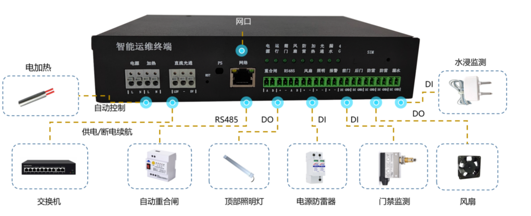 戶外智能監控設備箱核心模塊智能運維終端是一種專門為前端設備提供智能運維功能的物聯網控制設備。它可以放置在控制箱中,監控和收集前端設備的各種故障數據,并控制前端設備的斷電和重啟。