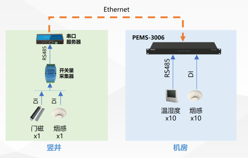 針對很多需要做動環監控系統的用戶,常常會遇到項目中涉及的動環監控系統除了需要監控機房本身,還需要同時監測如屏蔽室、豎井、泵房等區域的溫濕度、煙感、門禁、視頻等信號,這些區域具有布置分散、監控點位不多的特點,如果每個區域都配置嵌入式監控主機,無疑會增加項目的整體投資成本,那么今天我們就針對這種分散區域動環監控,介紹一種穩定可靠的低成本接入方案。