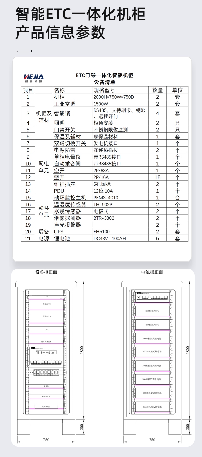 高速公路etc車道集成智能收費柜采用組裝模塊化創新結構,包括配電模塊、PDU單元、UPS模塊、動態環監控模塊、鋰電池模塊、溫控系統、機柜系統。配電模塊智能機柜放置在門架側,分為單電源供電和雙電源供電兩種方式。