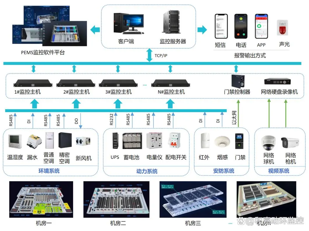 支持遠程訪問和控制,當(dāng)發(fā)生異常情況時,系統(tǒng)自動觸發(fā)告警,通過短信、電話、APP、微信等多種方式通知管理員