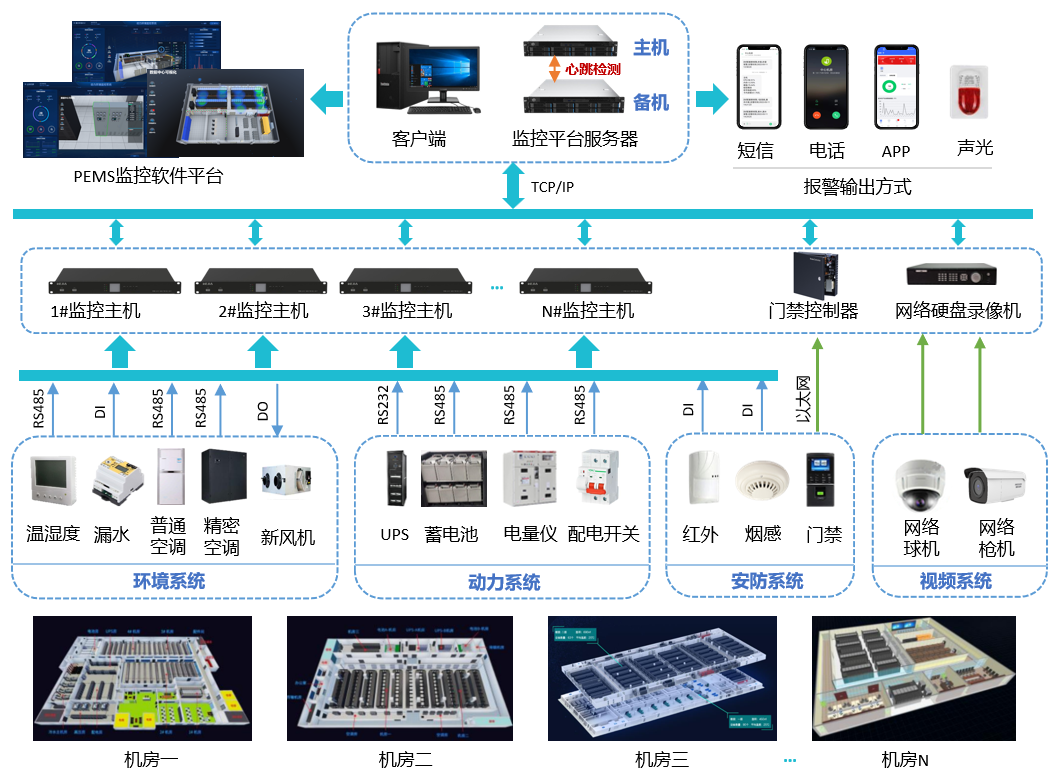多機房(站點)動力環境監控系統