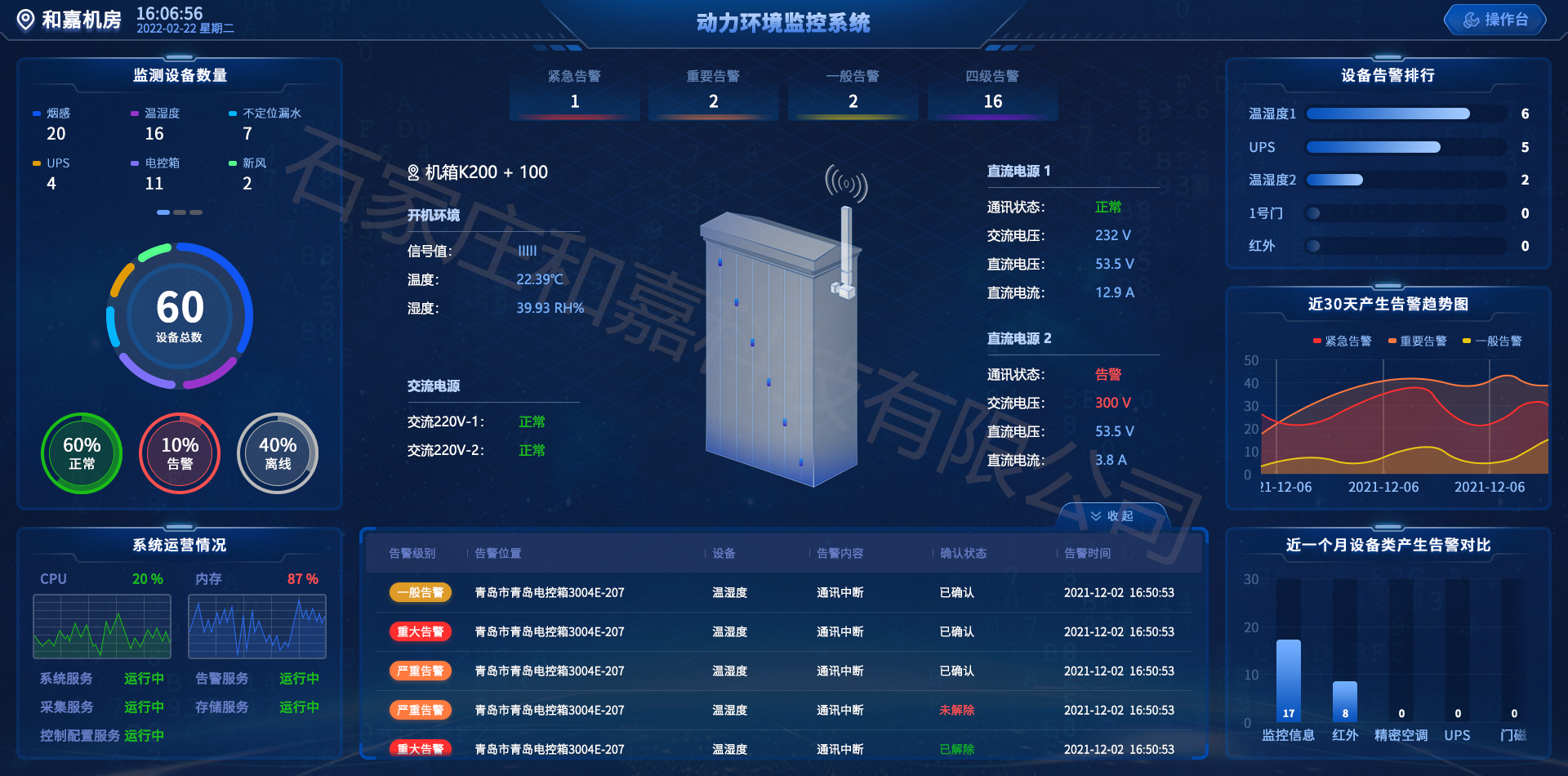 系統(tǒng)支持上千個(gè)點(diǎn)位的集中監(jiān)控,適用于機(jī)房、基站、倉庫、辦公場所、工廠、圖書館、實(shí)驗(yàn)室等等以及任何需要監(jiān)測市電的場所。