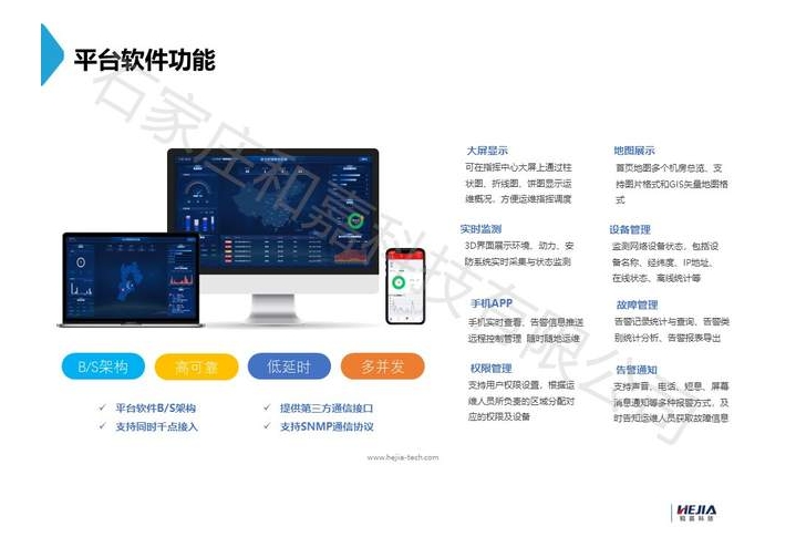 和嘉科技 PEMS - 5G 基站動力環境監控系統涵蓋了對 5G 基站內的動力、環境、安防、重要設備的全方位集中監控與統一管理,具體包含動力設備監控(諸如交流配電監測、直流配電監測、蓄電池監測等)、環境設備監控(例如空調監測、漏水監測、溫濕度監測等)、安防設備監控(像煙感監測、門禁監測、視頻監測等)、IT 設備監控(如網絡監測)等等,并借由 PEMS 動力環境監控平臺達成統一報警、權限、日志、備份的功能管理,達成實時監控、故障預防、迅速排障等功能。