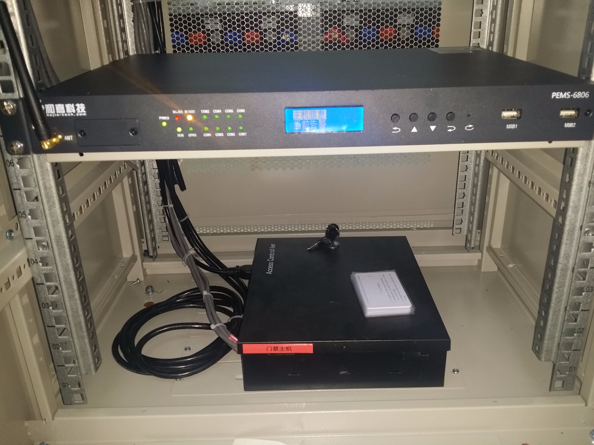 承德市委紅機機房監控系統,監控主機為嵌入主機PEMS-6806AD/T,配有WEB瀏覽可進行實時查看。