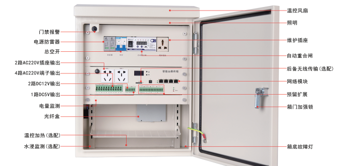 室外綜合電控柜專為智能交通、平安城市、高速公路全程監控等開發,集遠程監控、智能集中供電、防雷、動環監控、遠程控制、報警處理等功能為一體。