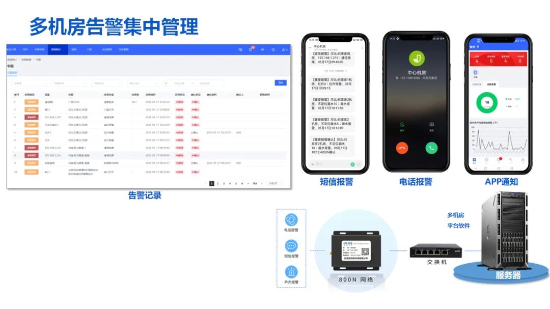 系統可根據已配置的告警規則,自動推送告警通知到動環監控運維平臺系統,并以電話、短信、APP等形式推送給對應運維人員。