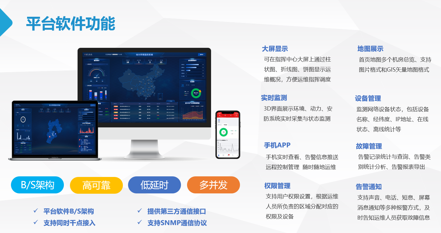 2023年4月,和嘉科技簽約鄭州市迎賓路與連霍高速公路互通式立交新建工程聯(lián)網(wǎng)機(jī)房動(dòng)環(huán)項(xiàng)目。 該項(xiàng)目位于鄭州市北部,迎賓路與連霍高速公路交叉處。項(xiàng)目采用單喇叭互通式立交方案,預(yù)留雙喇叭互通式立交建設(shè)條件;迎賓路機(jī)動(dòng)車(chē)道上跨連霍高速公路,兩側(cè)輔道、非機(jī)動(dòng)車(chē)道及人行道下穿連霍高速公路,匝道上跨連霍高速并與迎賓路平交。 和嘉科技為鄭州市迎賓路與連霍高速公路互通式立交新建工程提供軟硬件一體化機(jī)房動(dòng)環(huán)監(jiān)控,構(gòu)造統(tǒng)一的監(jiān)控和管理平臺(tái),通過(guò)數(shù)據(jù)采集和網(wǎng)絡(luò)傳輸?shù)姆绞剑瑢⒏髯元?dú)立的機(jī)房動(dòng)力環(huán)境設(shè)備的運(yùn)行狀態(tài)及參數(shù)等數(shù)據(jù)集中存儲(chǔ)、查詢(xún)和監(jiān)控。 同時(shí)對(duì)于異常數(shù)據(jù)進(jìn)行多種方式報(bào)警,從而縮短判斷故障的時(shí)限,提高解決故障的能力,達(dá)到實(shí)時(shí)記錄和監(jiān)控、有效預(yù)警和報(bào)警,一定程度上改變目前設(shè)備出現(xiàn)故障再進(jìn)行維修的被動(dòng)局面,做到預(yù)防在先,把隱患和故障消滅在萌芽中,實(shí)現(xiàn)機(jī)房從有人值守到少人或無(wú)人值守。 項(xiàng)目解決方案 機(jī)房動(dòng)環(huán)系統(tǒng)平臺(tái)支持機(jī)房各個(gè)設(shè)備監(jiān)控功能,監(jiān)控?cái)?shù)據(jù)可根據(jù)配置在不同場(chǎng)景下進(jìn)行個(gè)性化展示。可根據(jù)實(shí)際機(jī)房的設(shè)備情況創(chuàng)建運(yùn)行拓?fù)鋱D,機(jī)房動(dòng)環(huán)系統(tǒng)平臺(tái)提供常用設(shè)備(如UPS、精密空調(diào)、蓄電池、溫濕度、防雷、漏水等)的頁(yè)面展示模板和設(shè)備驅(qū)動(dòng)模板, 機(jī)房動(dòng)環(huán)系統(tǒng)平臺(tái)支持以圖、表等多種形式展示設(shè)備監(jiān)控的統(tǒng)計(jì)分析數(shù)據(jù)。 數(shù)據(jù)可視化將主要核心數(shù)據(jù)更直觀更清晰的集中展示在大屏上, 機(jī)房動(dòng)環(huán)系統(tǒng)平臺(tái)支持聲光、語(yǔ)音、電話(huà)、短信等告警通知方式,可根據(jù)實(shí)際情況顯示相應(yīng)的告警方式。 更多看點(diǎn) 和嘉科技專(zhuān)注動(dòng)力環(huán)境監(jiān)控監(jiān)測(cè)系統(tǒng)研發(fā)與生產(chǎn),目前已服務(wù)于數(shù)千家政府、企業(yè)、金融、醫(yī)療等行業(yè)用戶(hù)。 更多項(xiàng)目信息可關(guān)注“和嘉科技”官網(wǎng)典型案例類(lèi)目查看http://www.bjdtjyjdljydy.com.cn/ 聯(lián)系我們 聯(lián) 系 人:和嘉科技 聯(lián)系方式:18533160958 聯(lián)系電話(huà):0311-85067877 地 址:河北省石家莊市中化大廈