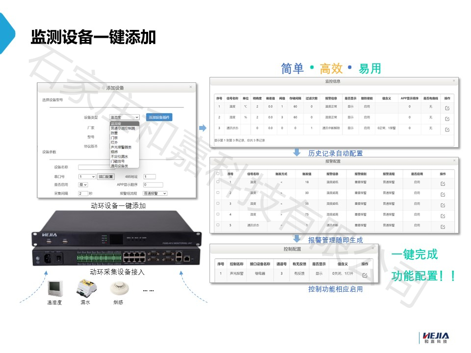 石家莊和嘉科技主營動力環境監控系統、傳感器、智能監控箱、變電站智能輔控屏柜、智能電控柜、ETC門架智能控制柜等產品