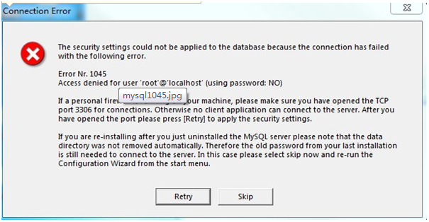 解決方法:這說明你安裝之前沒有把我第1條中說的目錄下把Mysql文件夾刪除。不知道是否影響后續使用,可能記得密碼的話沒關系。另附帶一句,管理員密碼是自己設的,用戶名則為默認root。