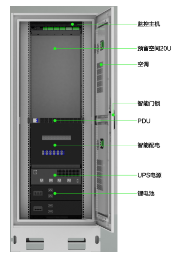 具備19英寸機架安裝條件;機柜安裝防盜鎖;采用內嵌門設計,無裸露可拆卸部件;具備遠程門禁控制功能;采用底部進出線方式;防護等級:IP55。