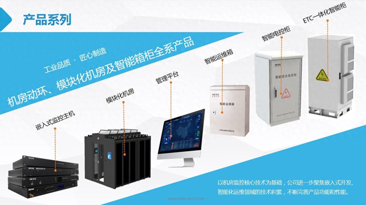 目前主要有智能運維箱、PEMS機房動力環境監控系統、模塊化機房、ETC一體機智能機柜、智能電控柜等產品。