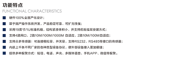 這些特性使和嘉科技國產(chǎn)化動(dòng)環(huán)監(jiān)控主機(jī)能夠適應(yīng)各種復(fù)雜環(huán)境下的監(jiān)控需求,為中小型數(shù)據(jù)中心提供全面的動(dòng)環(huán)監(jiān)控解決方案。