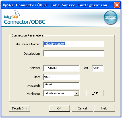查看ODBC數據源中是否添加有“industrycontrol”數據源,IP、用戶名和密碼是否正確,關聯的數據庫是否正確。